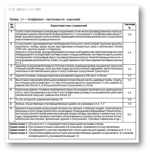 При расчёте сейсмики по украинским нормам ДБН В.1.1-12~2006 в Robot не разрешается изменять коэффициент ответственности сооружения К2 согласно таблицы 2.4: