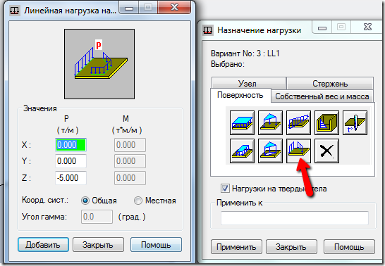 Этот тип нагрузки можно применять не только к граням плит, но и к вспомогательным объектам - линиям, полилиниям и т. д.